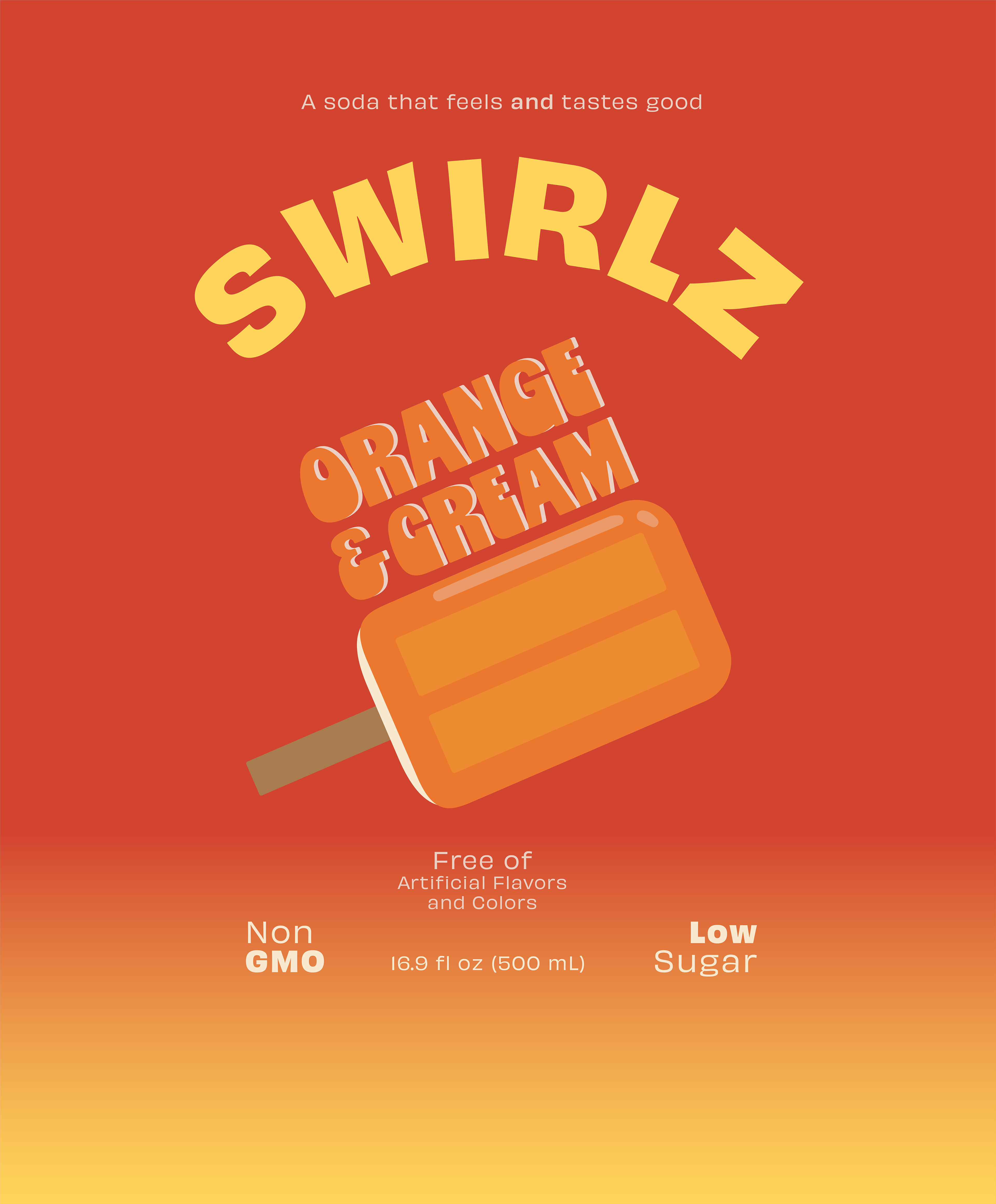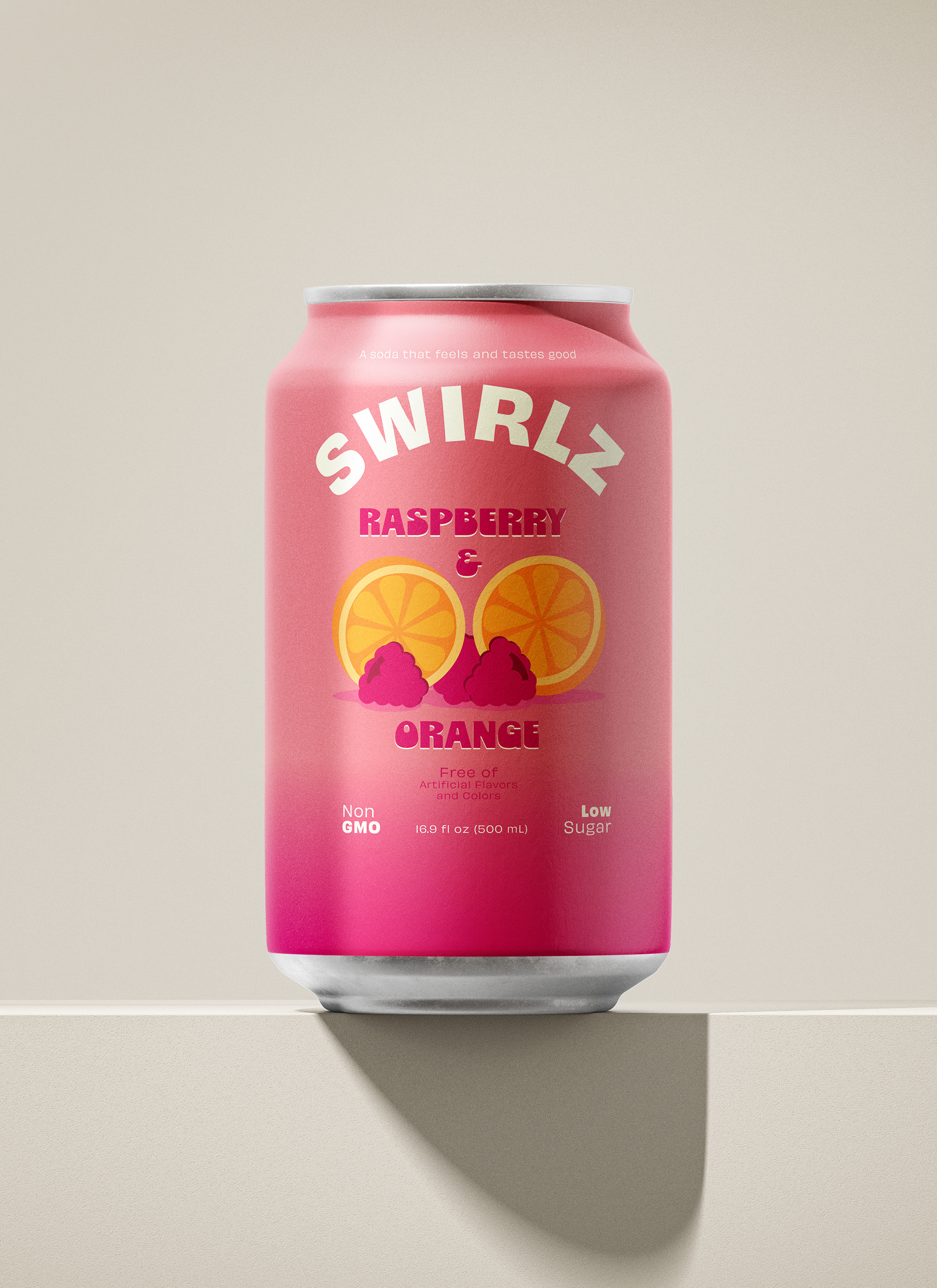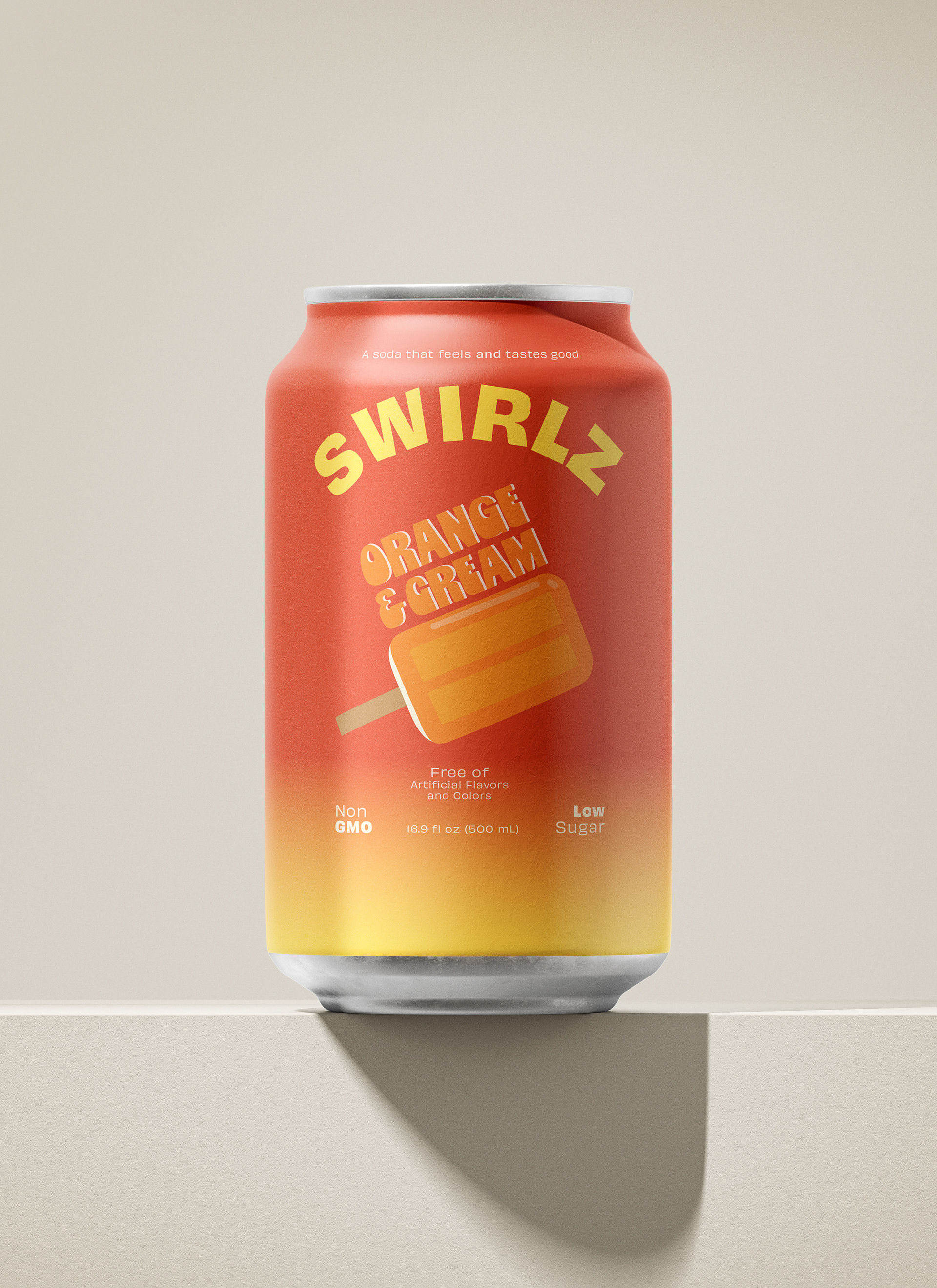 Four distinct can designs of a healthy, probiotic soda that fall under the same branding principles | 2024